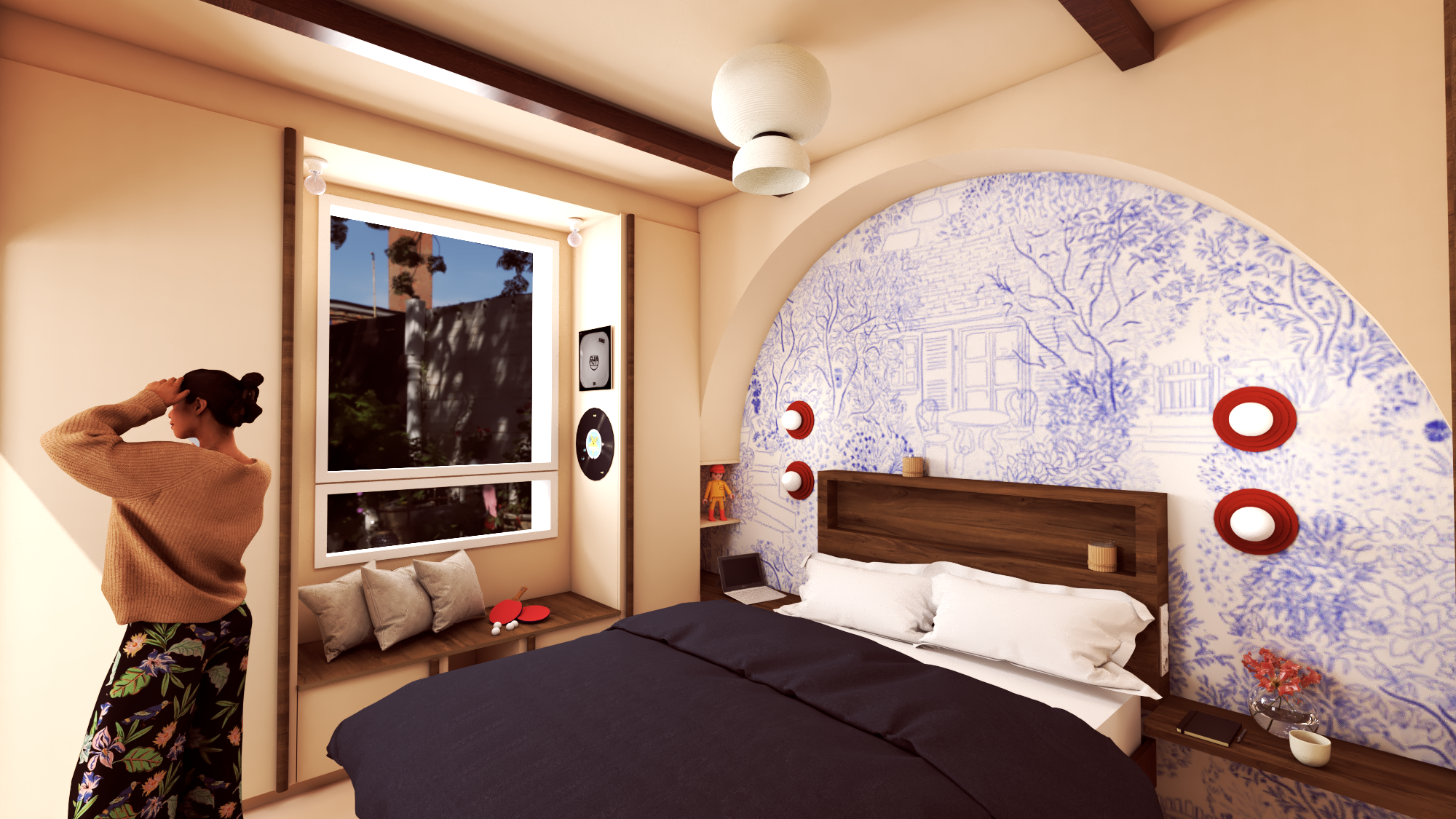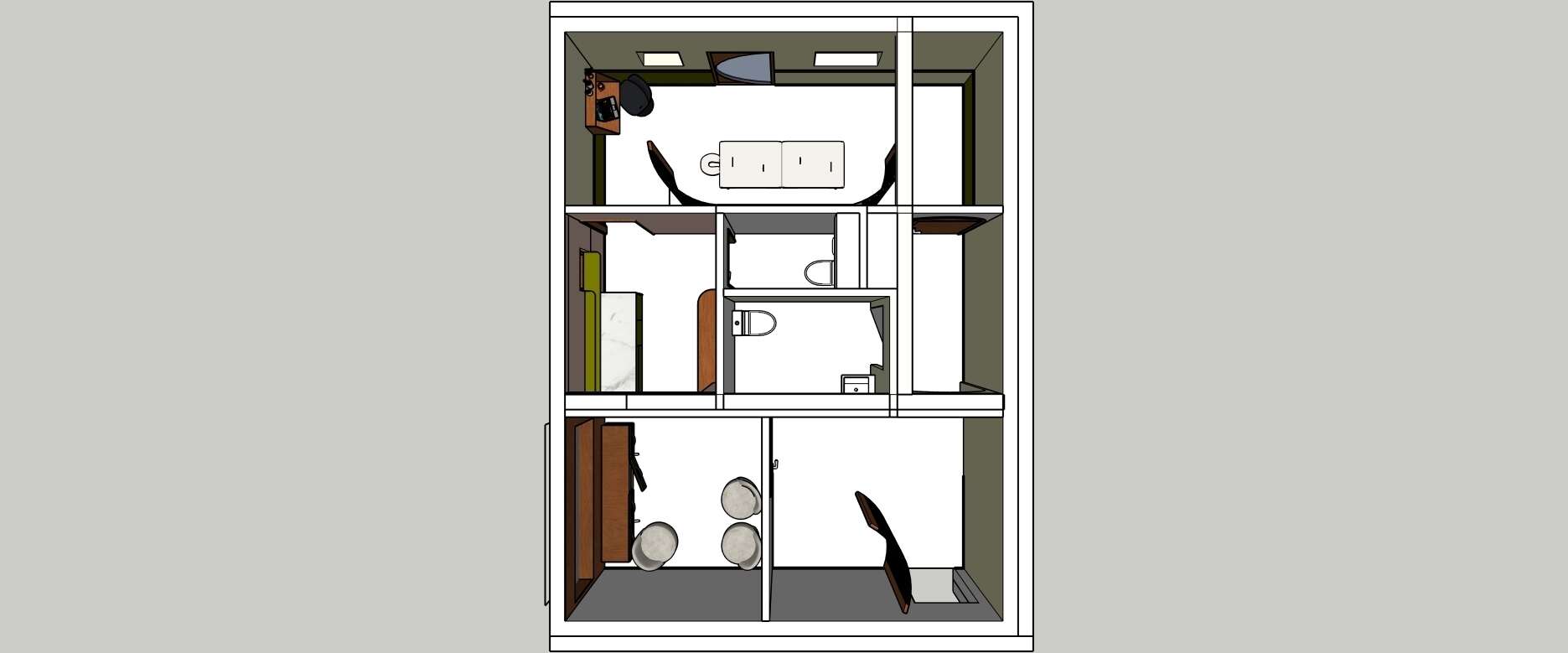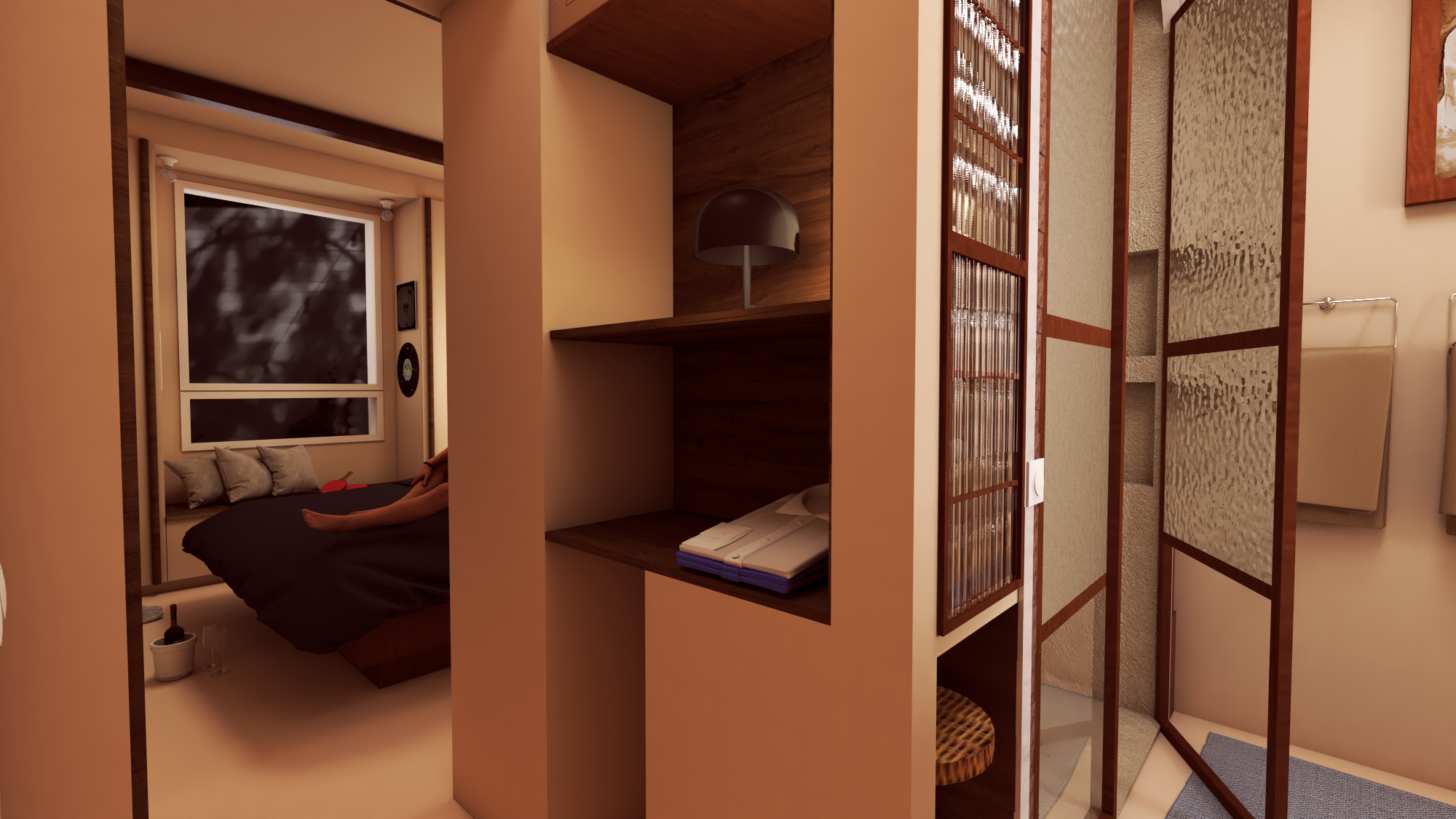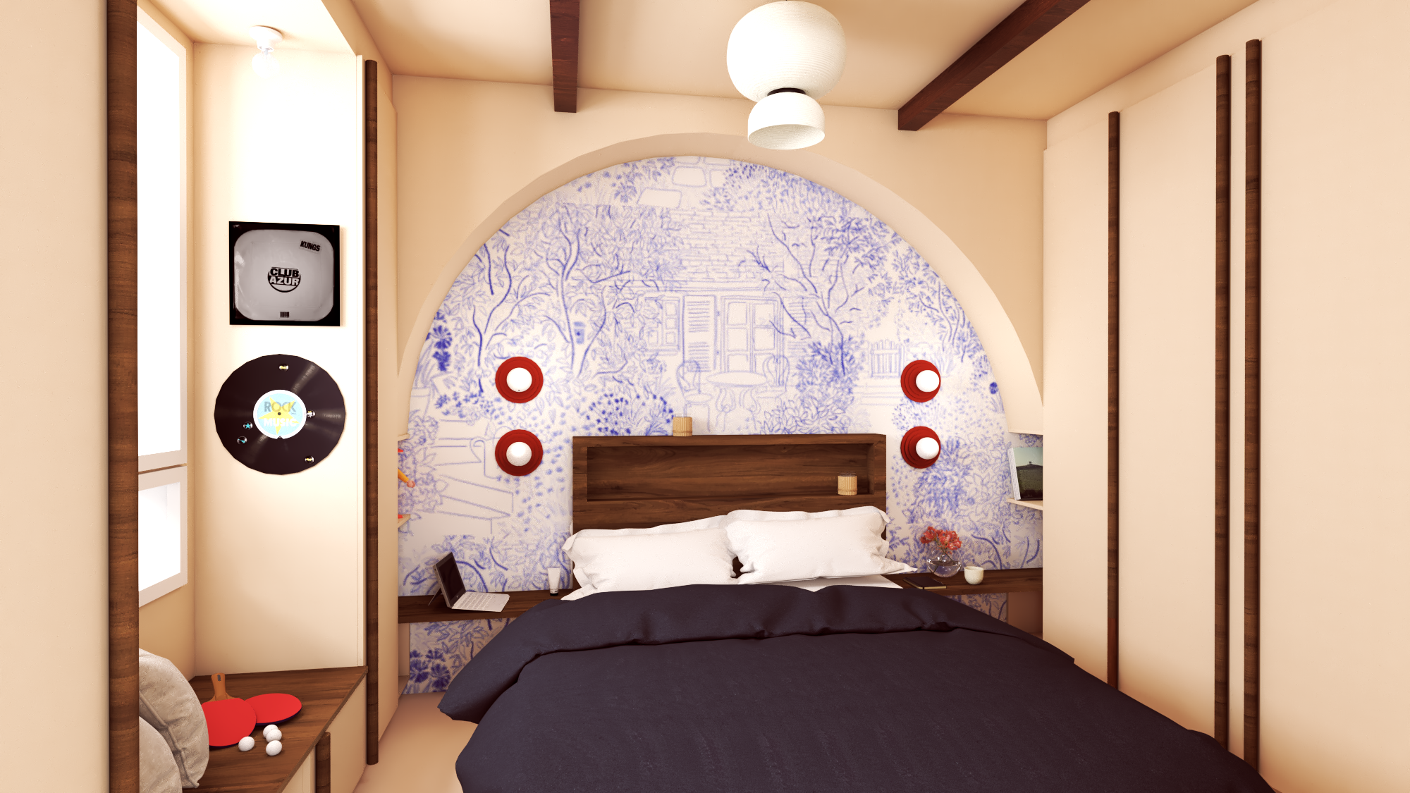 Création d’une suite parentale (Chambre, dressing et salle d’eau) dans un studio jusque-là séparé de la maison. Par la création d’une extension, le studio transformé intègre la maison familiale et devient une confortable suite parentale en rez-de-chaussée, dans laquelle les parents retrouvent intimité et calme!