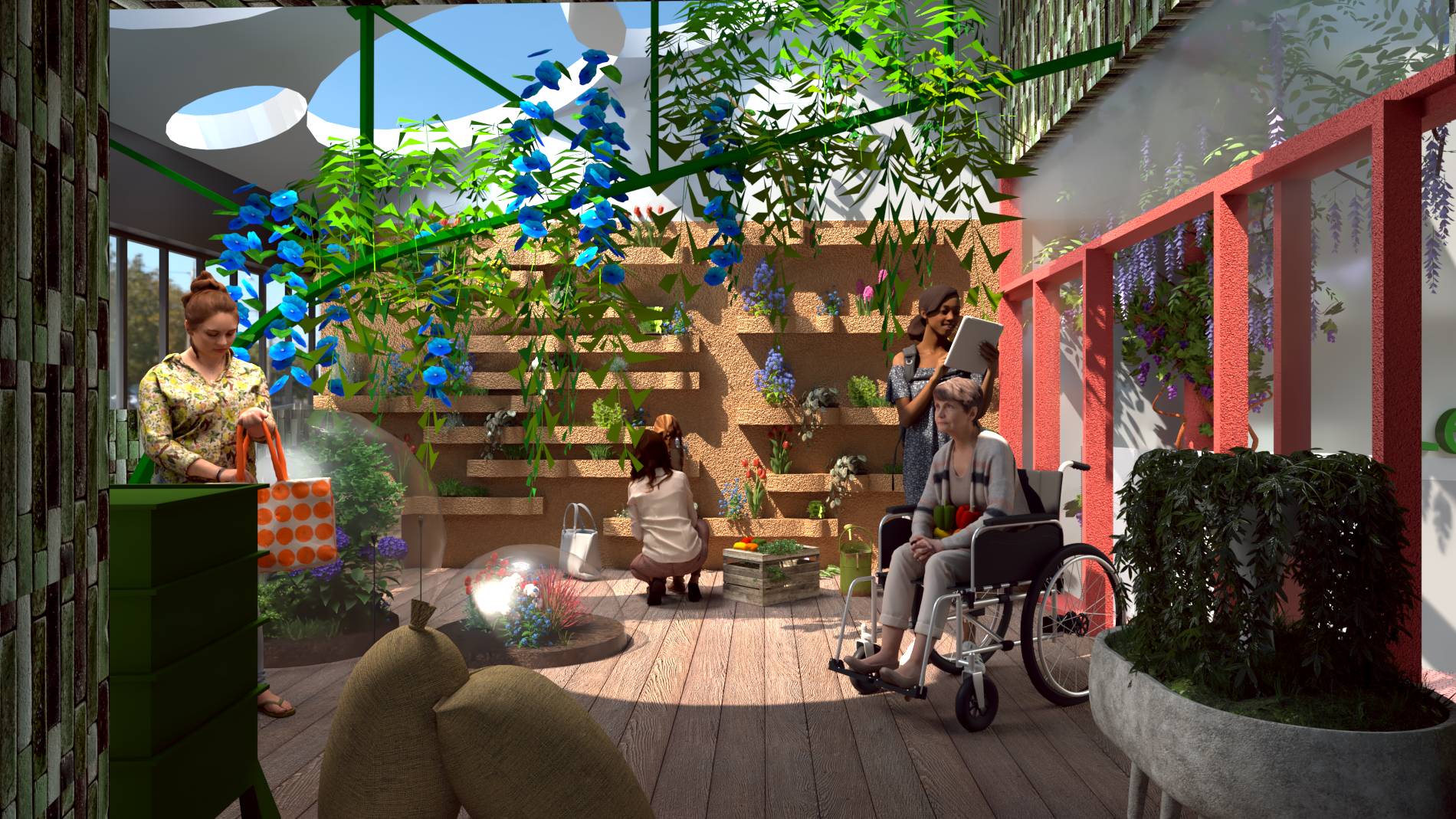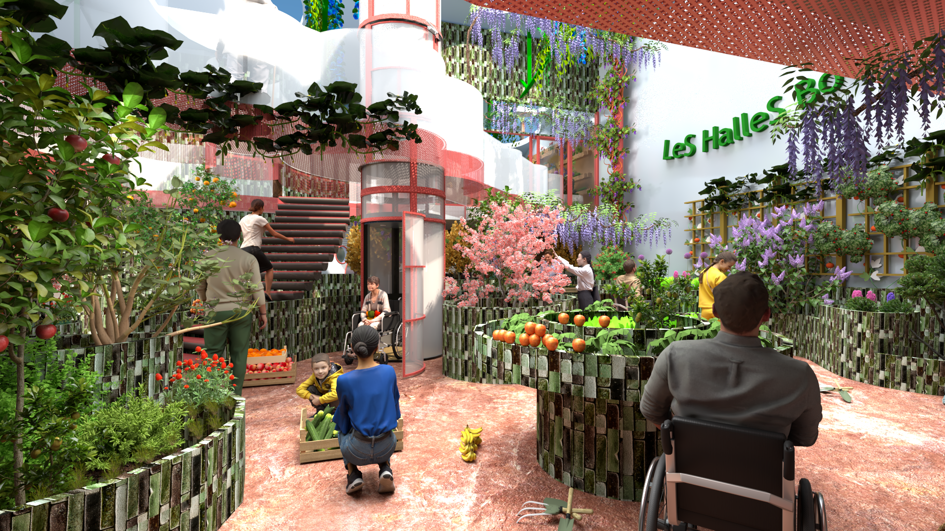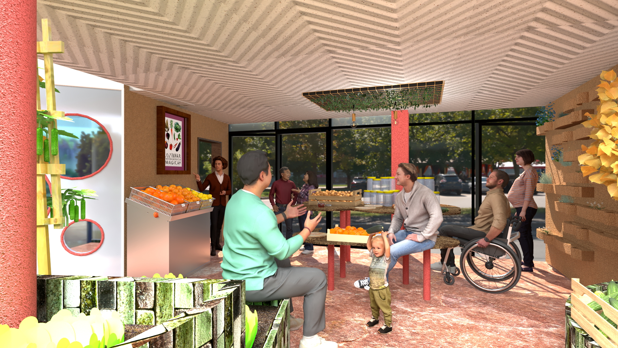 Transformation d’un espace nu en un espace accueillant pour l’organisation d’ateliers autour du potager et du bien manger. Traitement de l'acoustique pour le confort des clients et mobilier sur mesure dans un matériau bio sourcé. Projet d'étude.